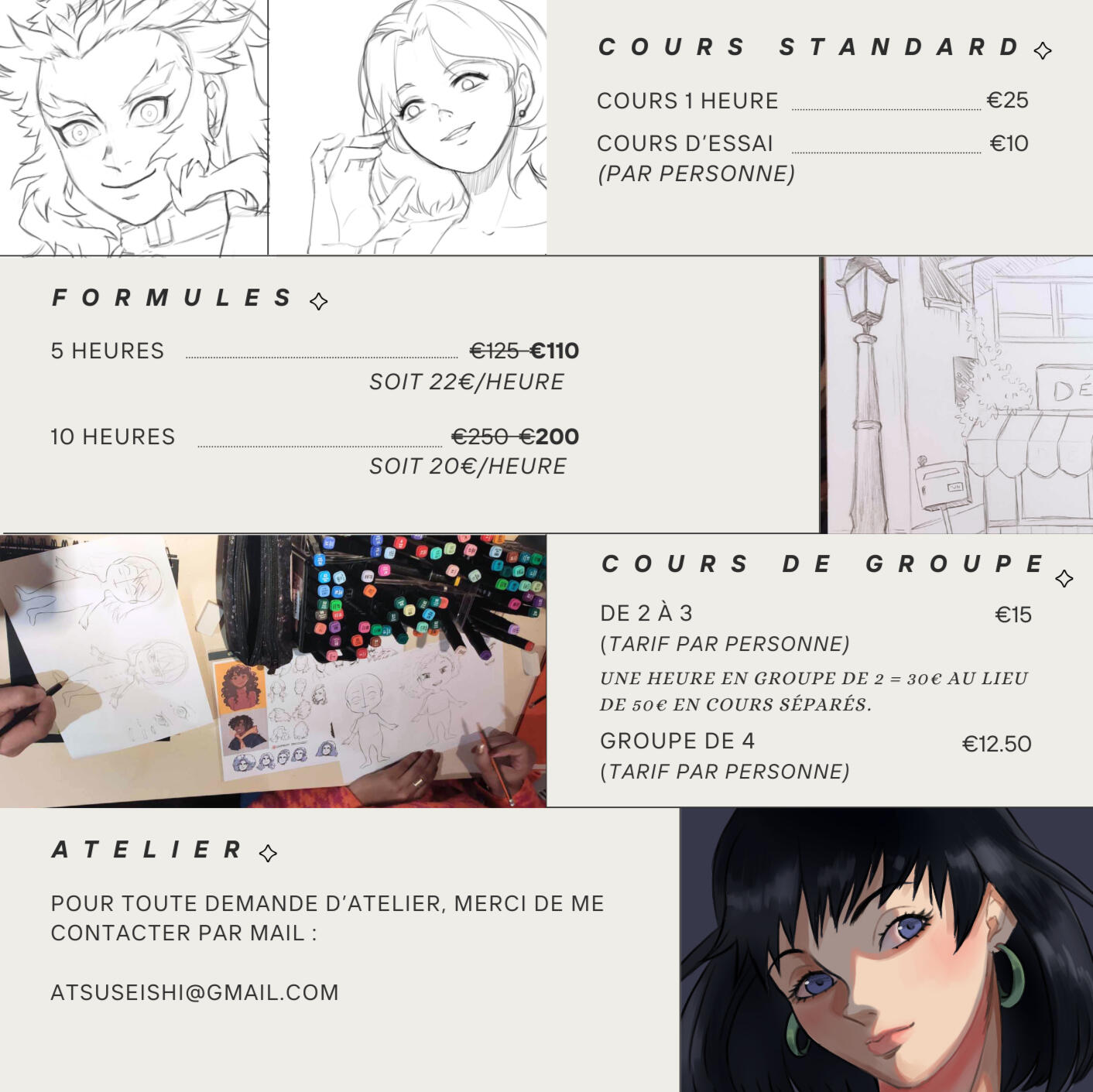 Cours privés ou ateliers.