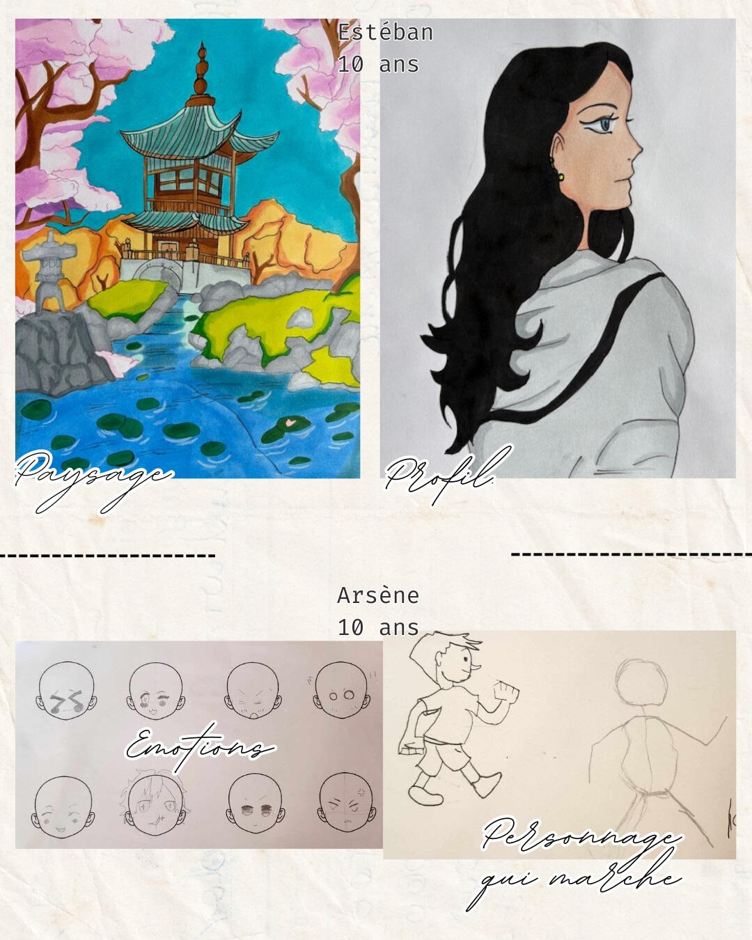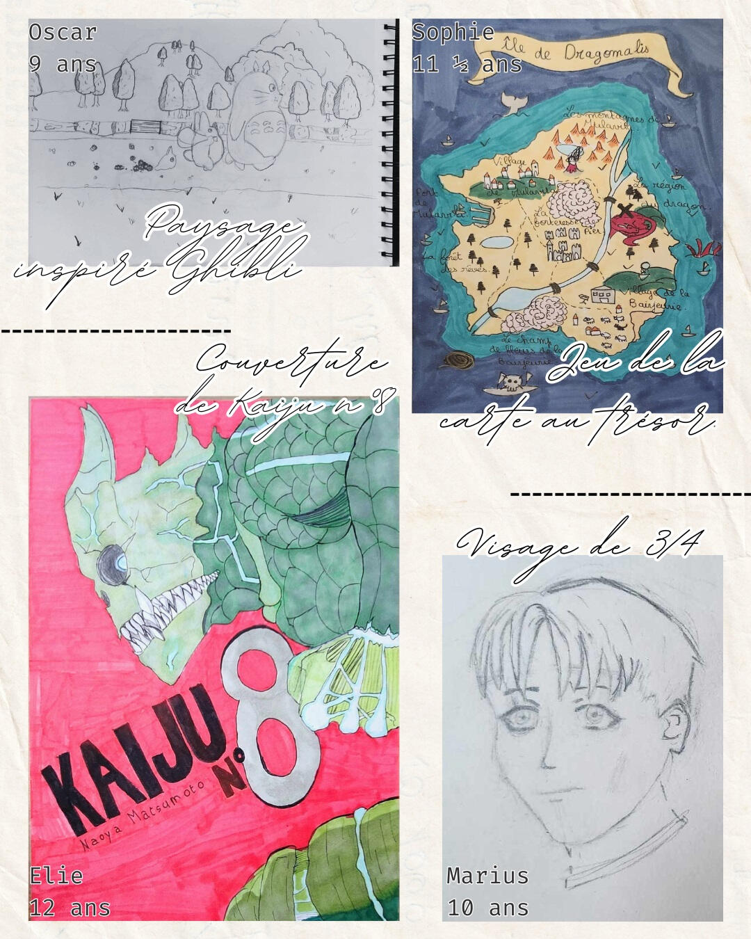 Dessins et activités réalisés avec les élèves en cours privés et quelques avis.